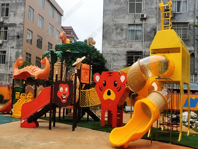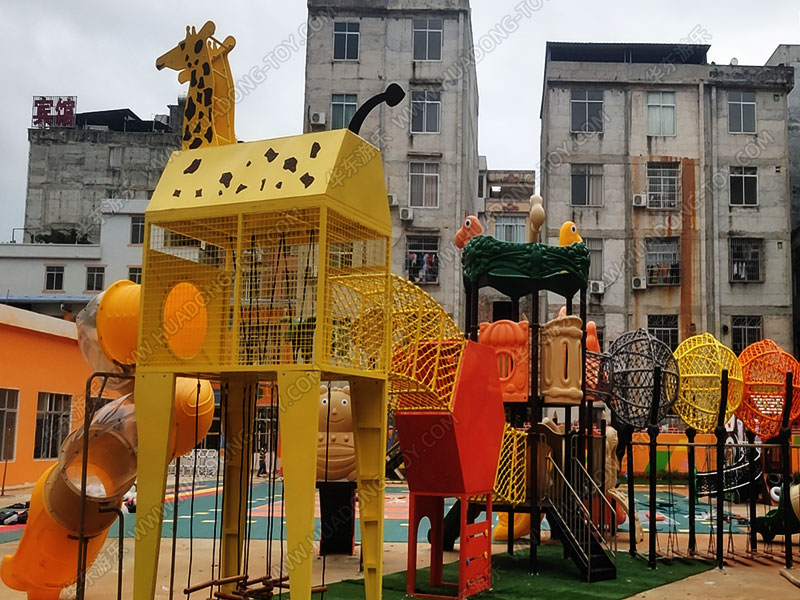 该幼儿园项目采用的是乐鱼体育游乐自主研发的动物世界系列大型滑梯组合,该滑梯以可爱的小动物为设计模型,让小朋友可以和谐的与小动物相处,教育他们能够保护小动物,爱护小动物。