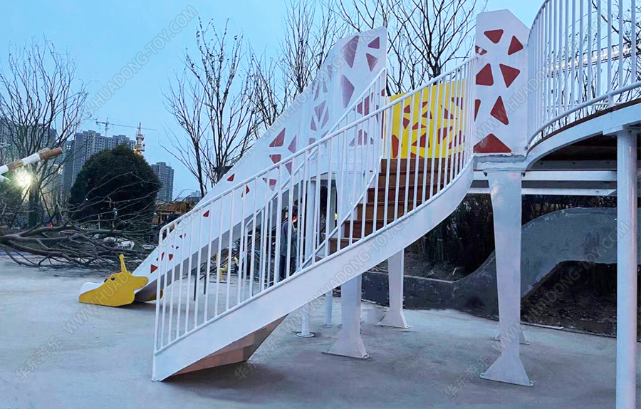 • 河南商丘市项目是一款长颈鹿风格的游乐设备,该游乐设备具有不锈钢滑梯、旋转爬梯等功能,生动的形态给小朋友一种欢乐和喜悦感,让小朋友能够与之愉快的玩耍。