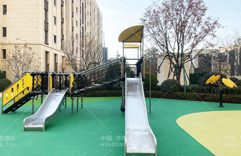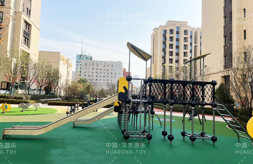• 太原华润昆仑域地产项目选用的是乐鱼体育游乐自主研发的游乐设备,娱乐场里选用了健身器材、具备攀爬网、不锈钢滑梯为一体的综合性游乐设备,为生活在该小区的人们提供了一个生活、休闲、娱乐的场所。
