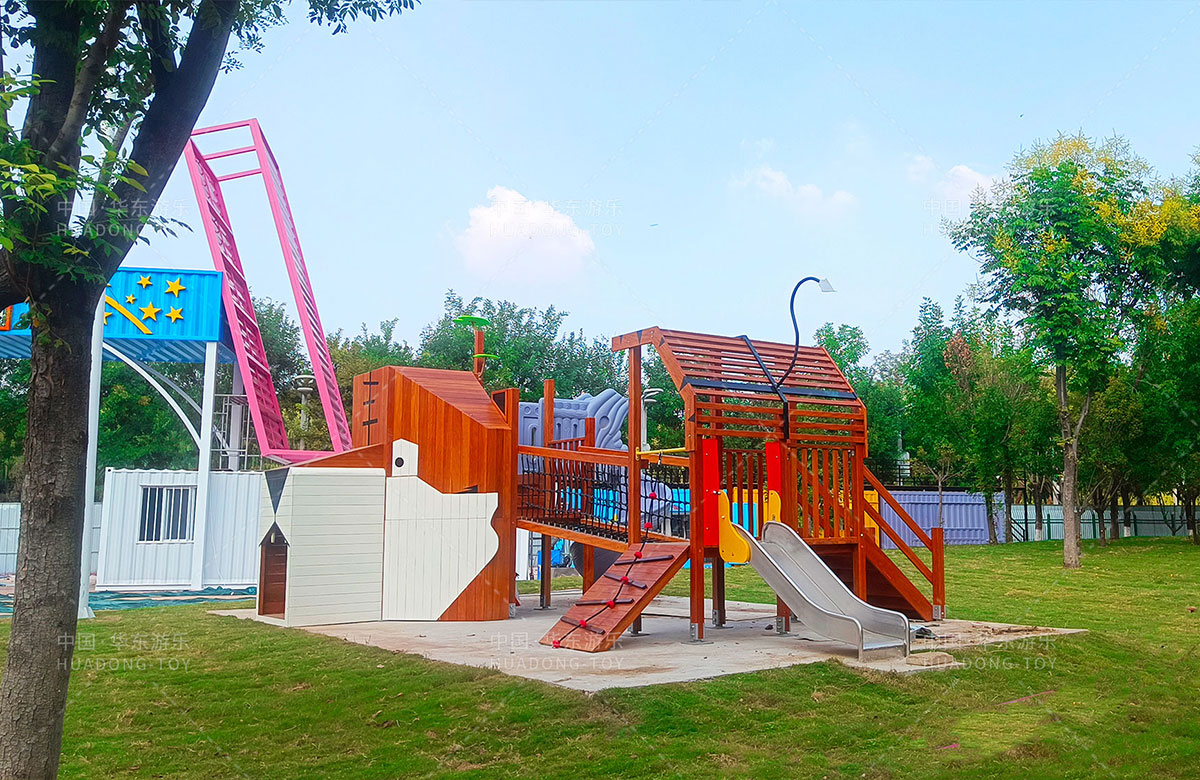 • 山东省元气丛林亲子乐园是一个综合性儿童游乐公园,公园内设置了小朋友喜欢的儿童摇摇乐、儿童跷跷板、旋转座椅,大型非标定制的组合滑梯、中国龙木质滑梯等游乐设备,具备了攀爬网、攀爬墙、钻洞、滑梯等多种功能,为孩子们的玩耍提供了很好的场地。