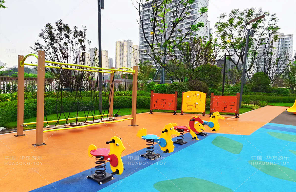 • 四川省成都市新城林屿溪选用的是乐鱼体育游乐自主研发和设计的非标定制系列的游乐设备,为了更多让小朋友们有一个玩耍的场地,整个游乐场分别设计了儿童摇摇乐、儿童秋千、成人健身器、趣味迷宫、平衡吊桥、旋转椅、象鼻组合滑梯等游乐设备。