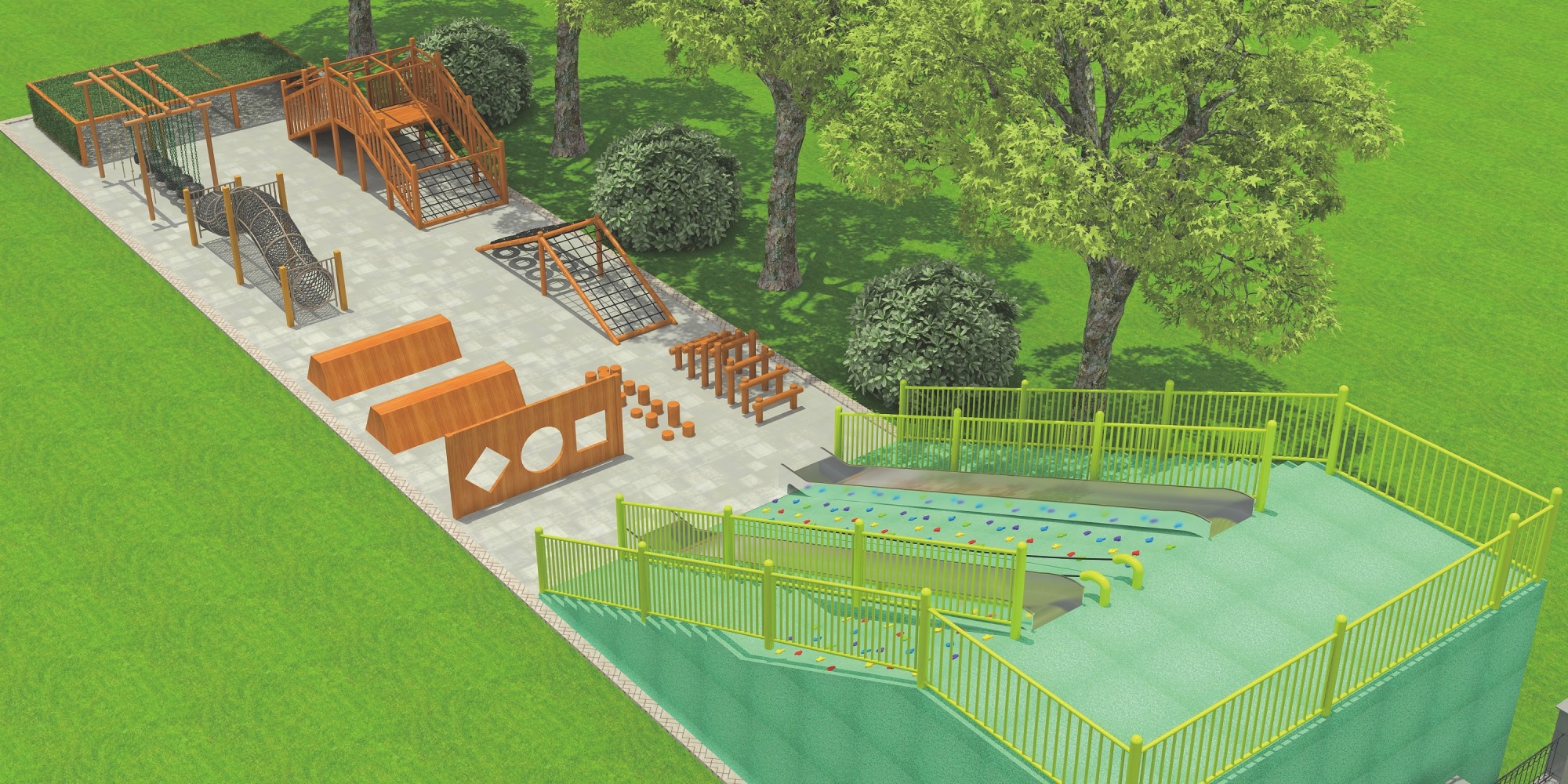 木质拓展设施采用天然木材打造,设计注重安全与挑战并重。通过悬挂桥、攀爬网、平衡木等多样化的障碍元素,旨在提升参与者的体能、平衡感及团队协作能力,同时享受亲近自然、挑战自我的乐趣。